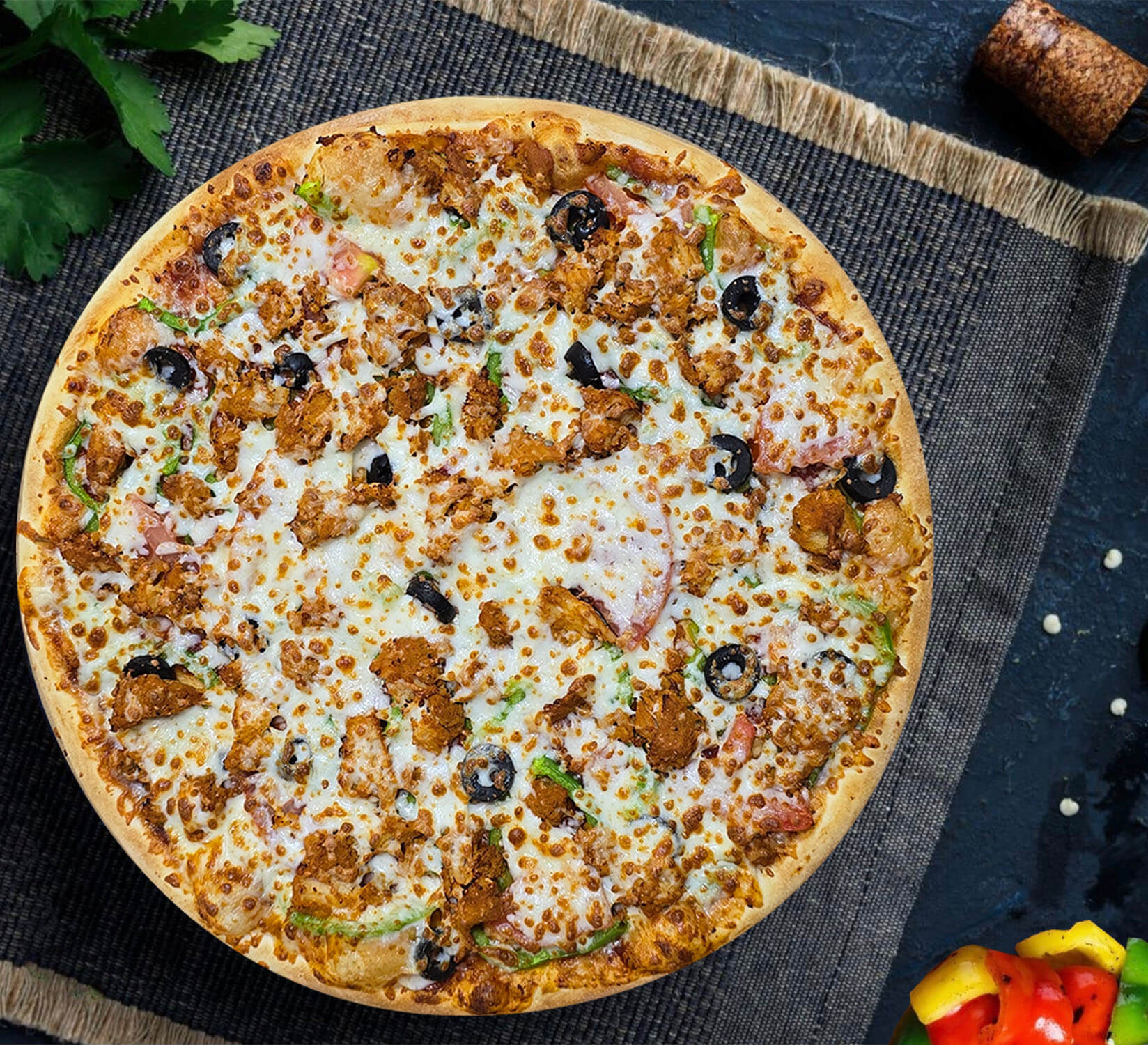 خلطة دجاج رائعة بعجينتنا المقمرة مغمورة جبنة سائلة